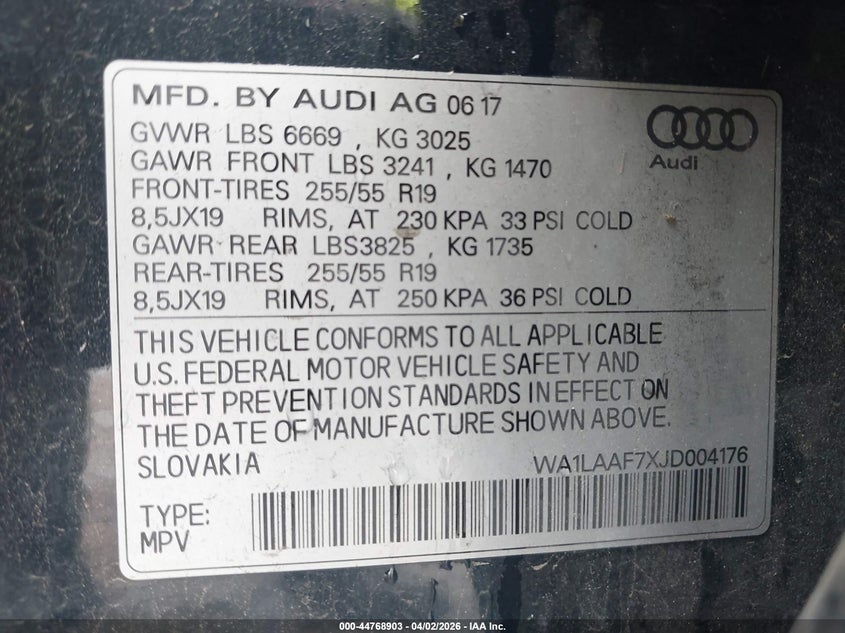 • WA1LAAF7XJD004176