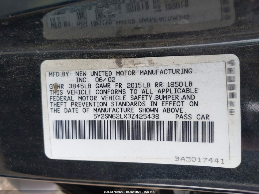 • 5Y2SN62LX3Z425438