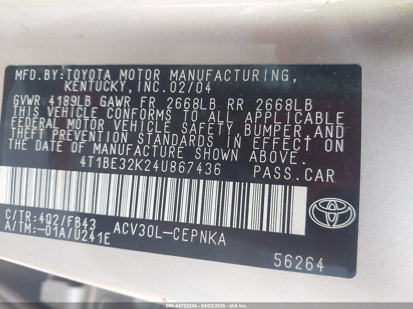 • 4T1BE32K24U867436