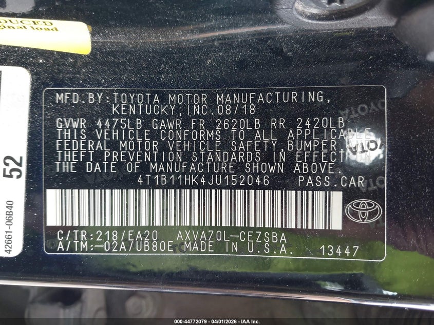 • 4T1B11HK4JU152046