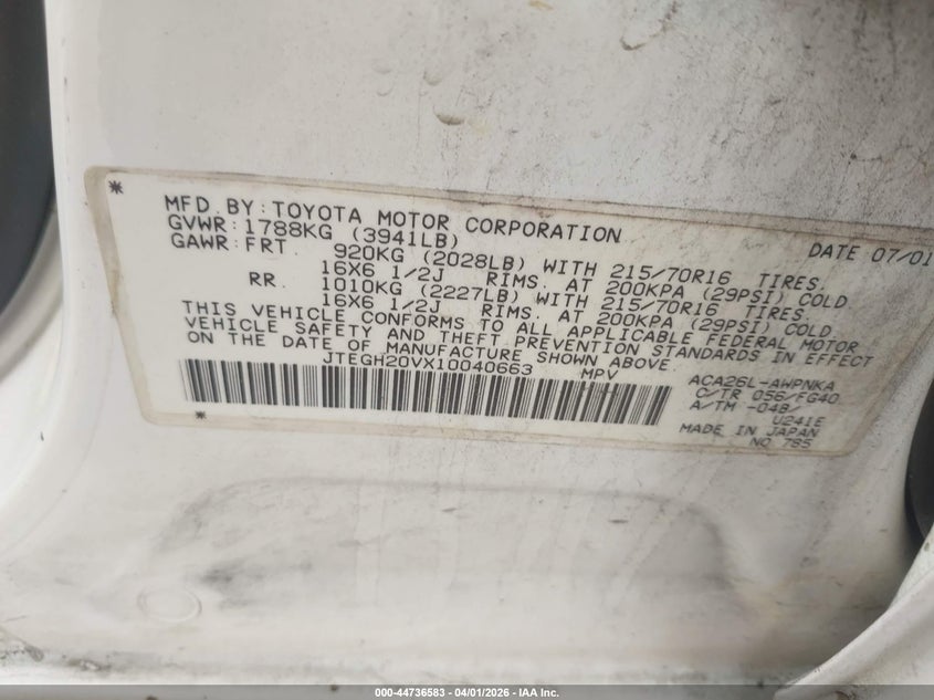 • JTEGH20VX10040663