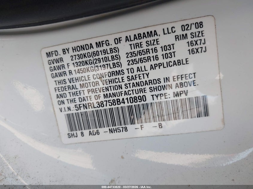 • 5FNRL38758B410890