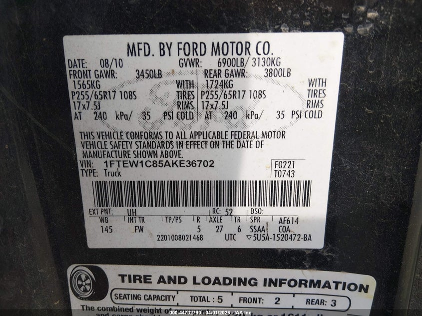 • 1FTEW1C85AKE36702