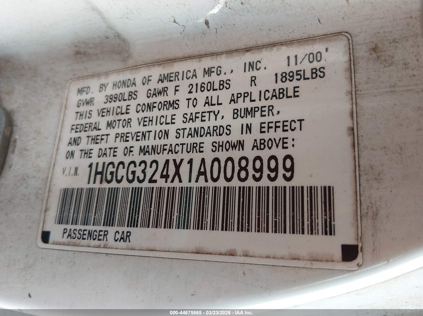• 1HGCG324X1A008999