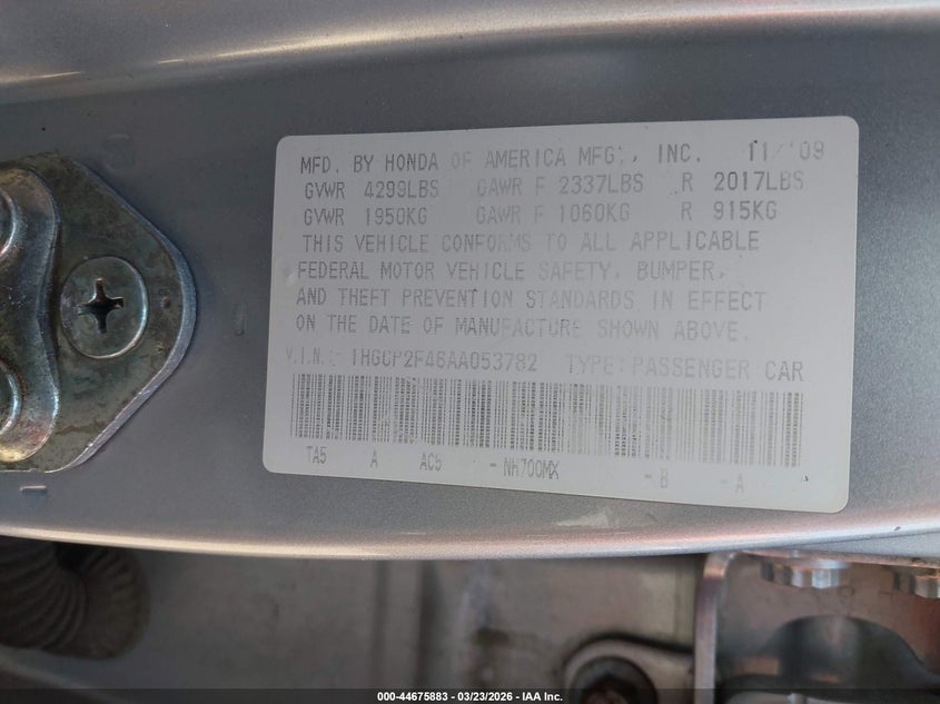 • 1HGCP2F46AA053782
