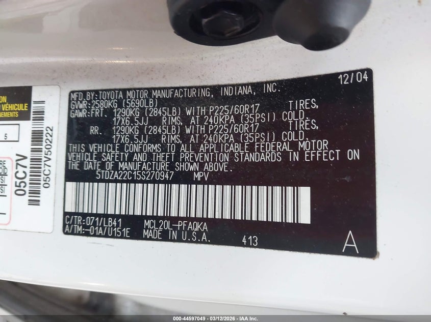 • 5TDZA22C15S270947