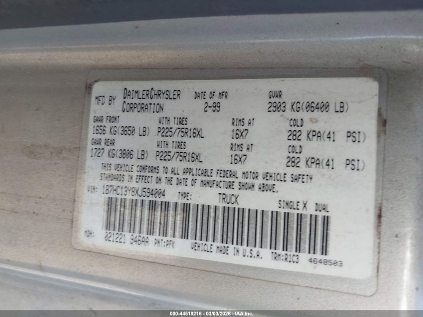 • 1B7HC13Y8XJ594004