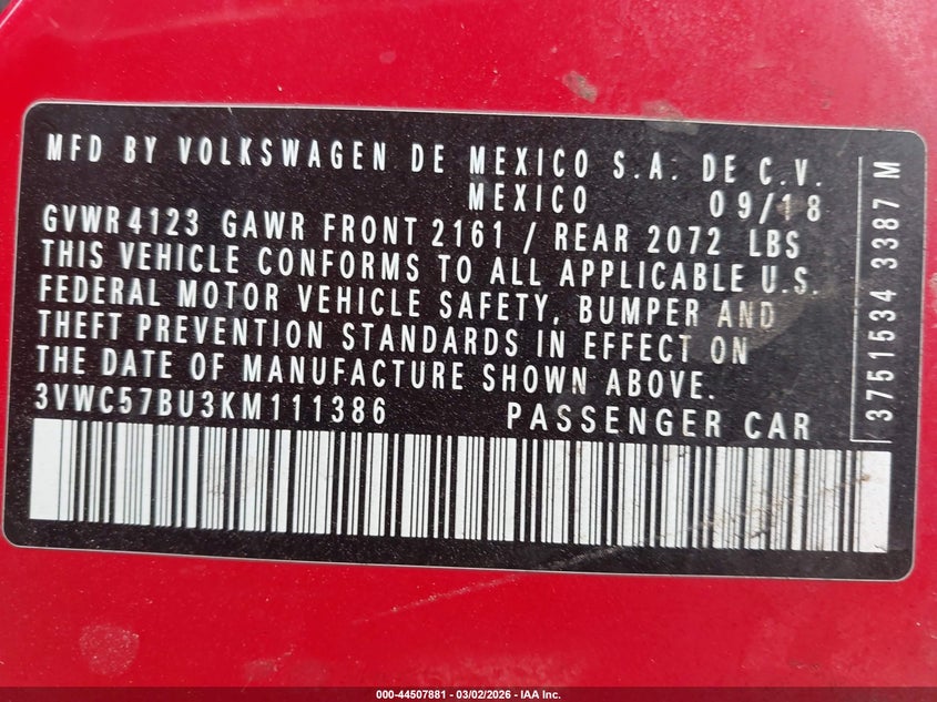 • 3VWC57BU3KM111386