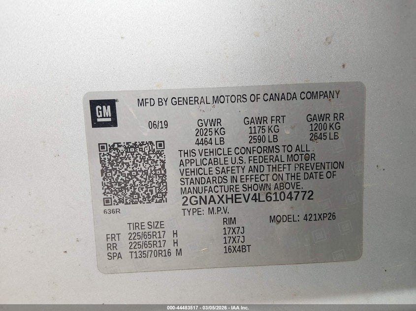 • 2GNAXHEV4L6104772