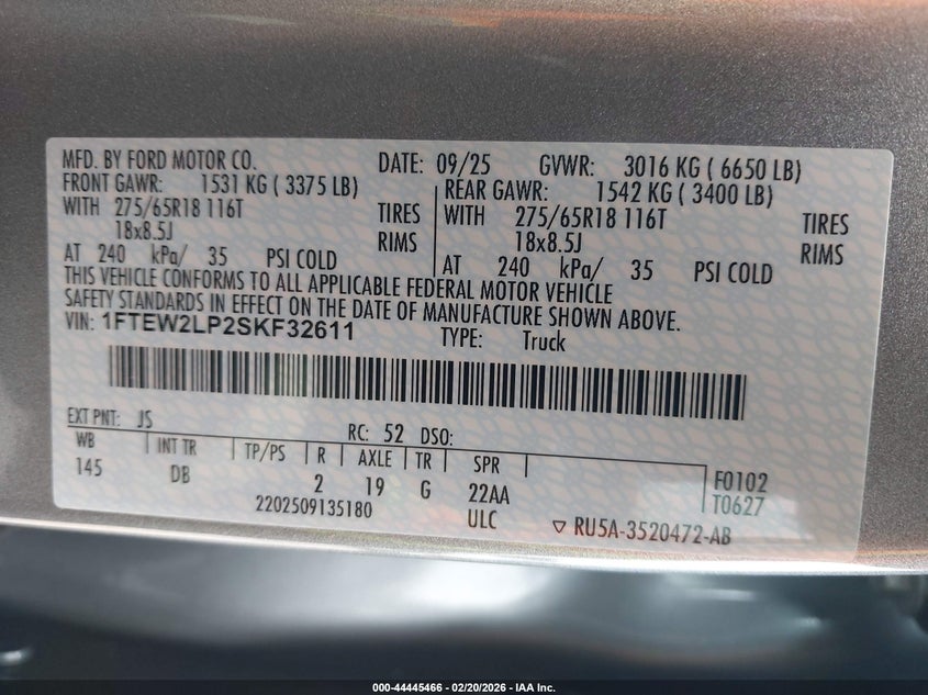 • 1FTEW2LP2SKF32611