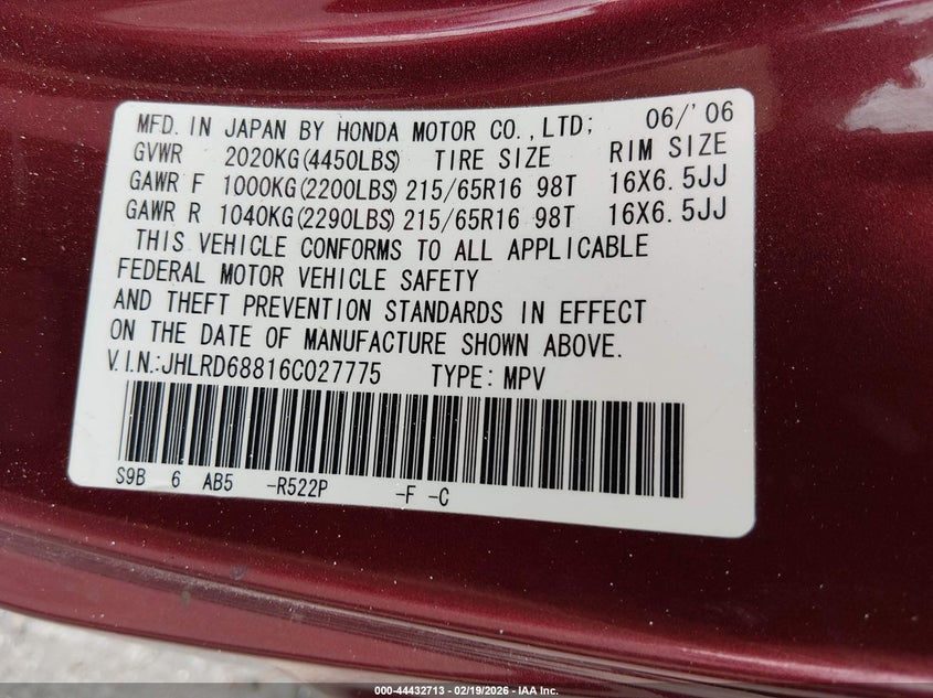 • JHLRD68816C027775