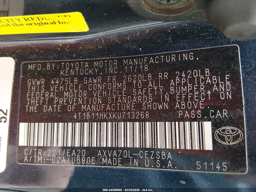 • 4T1B11HKXKU713268