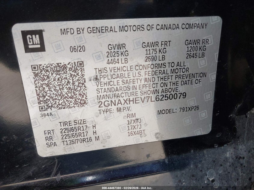 • 2GNAXHEV7L6250079