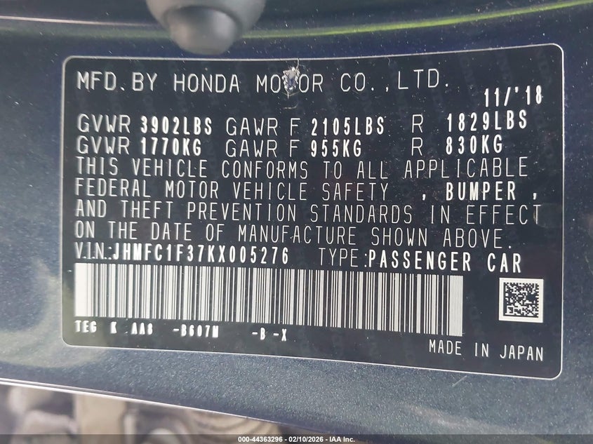 • JHMFC1F37KX005276