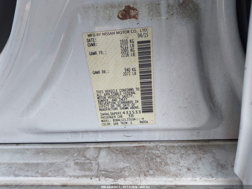 • 1N4AL3APXFC431533
