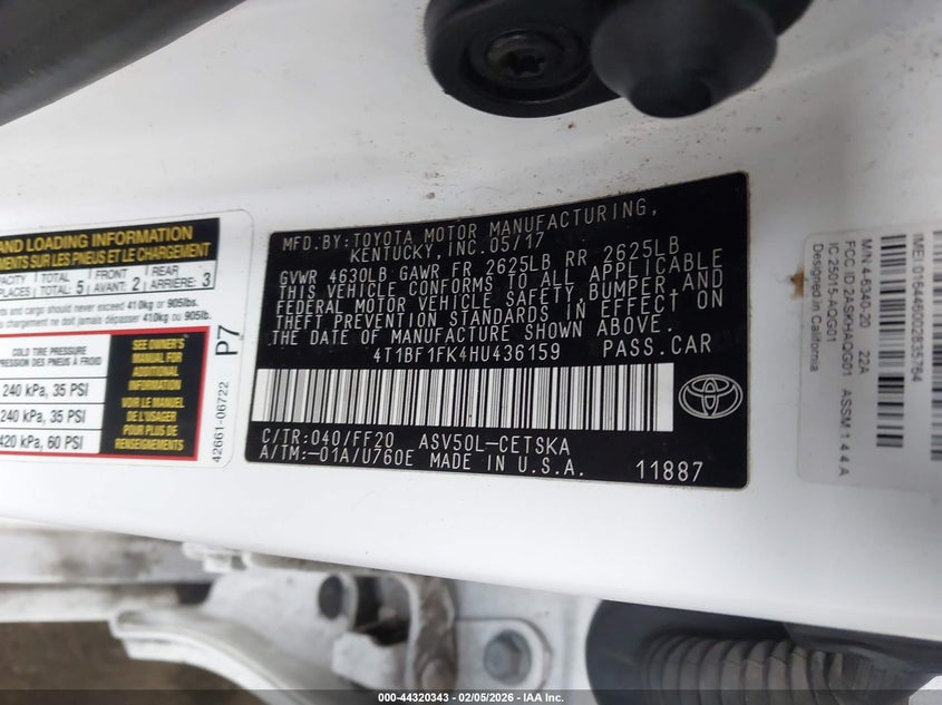 • 4T1BF1FK4HU436159