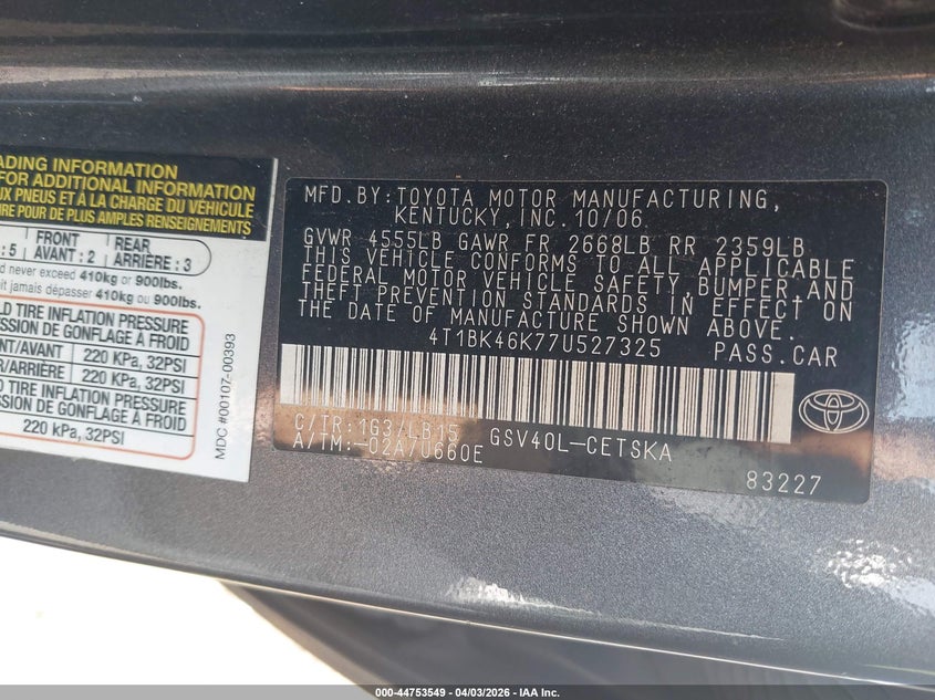 • 4T1BK46K77U527325