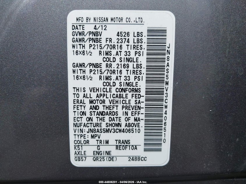 • JN8AS5MV3CW406510