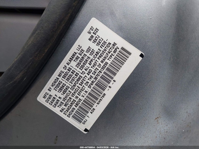 • 5FNRL38767B135299