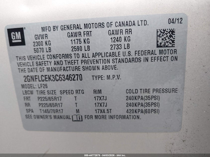 • 2GNFLCEK3C6346270