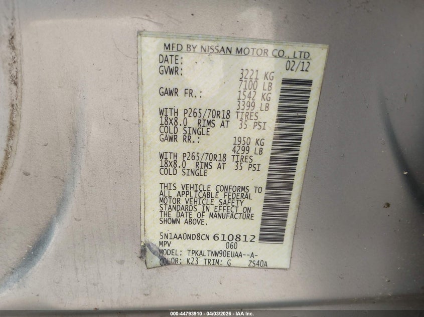 • 5N1AA0ND8CN610812
