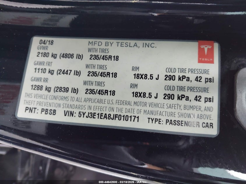 • 5YJ3E1EA8JF010171