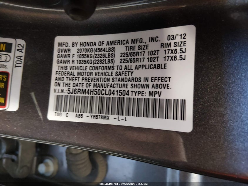 • 5J6RM4H50CL041504
