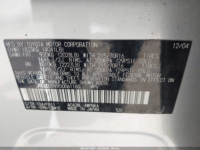• JTEGD20VX50061160