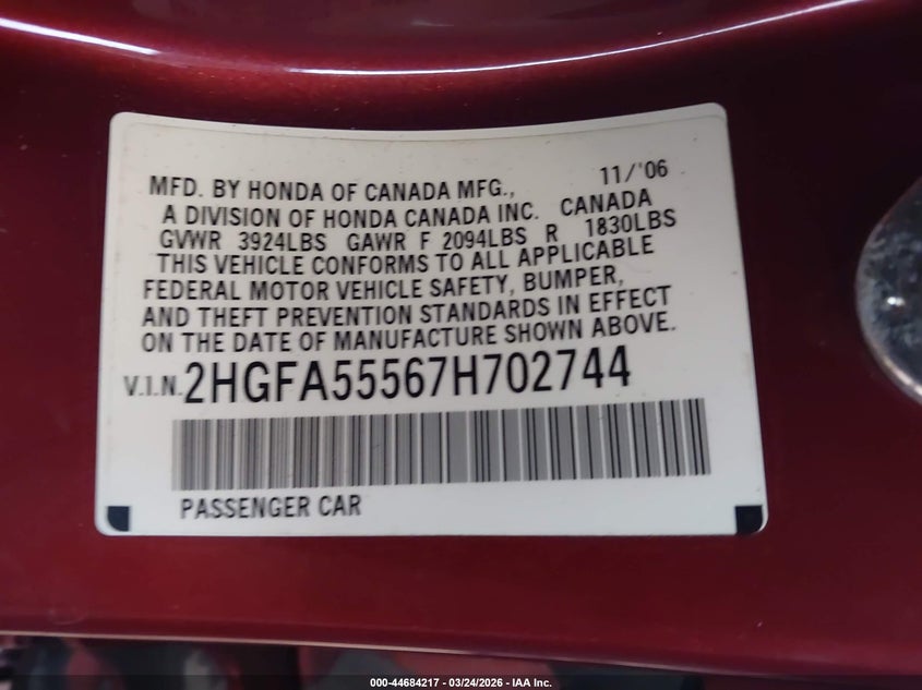 • 2HGFA55567H702744