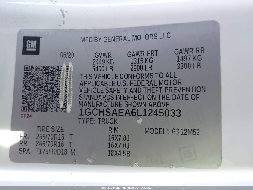 • 1GCHSAEA6L1245033