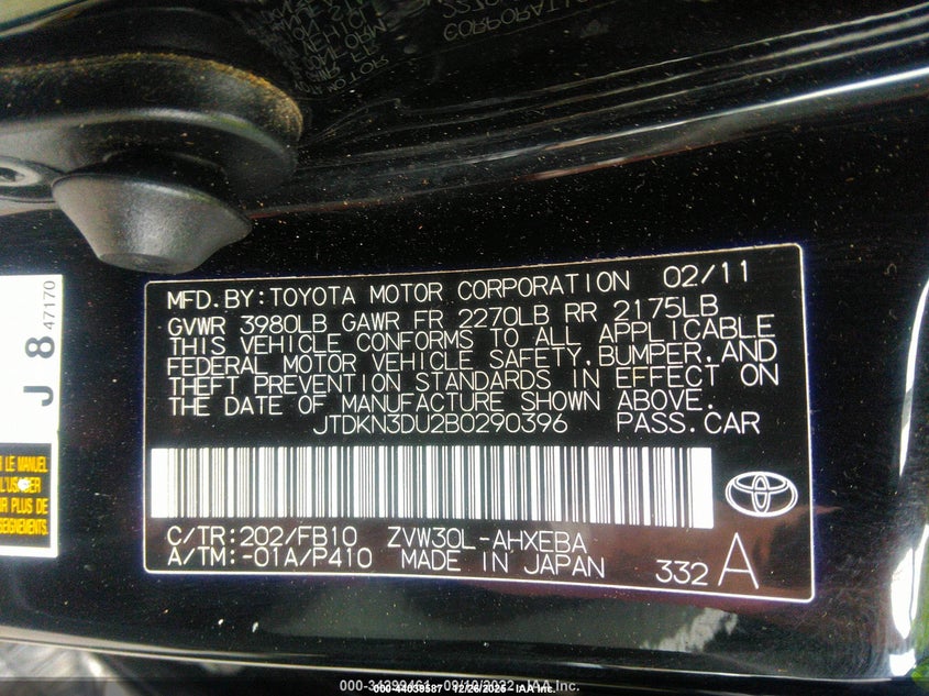 • JTDKN3DU2B0290396