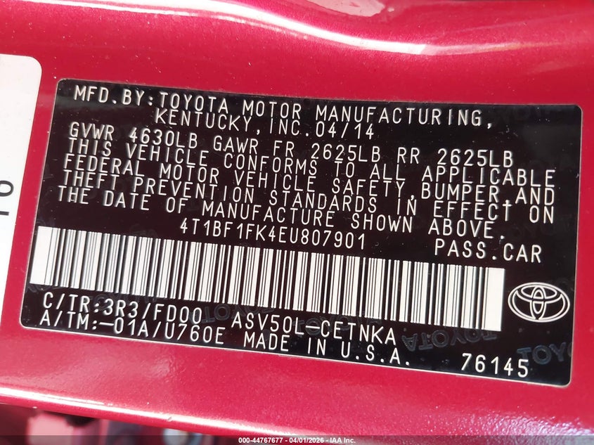 • 4T1BF1FK4EU807901