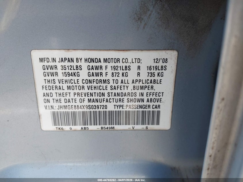• JHMGE884X9S039720