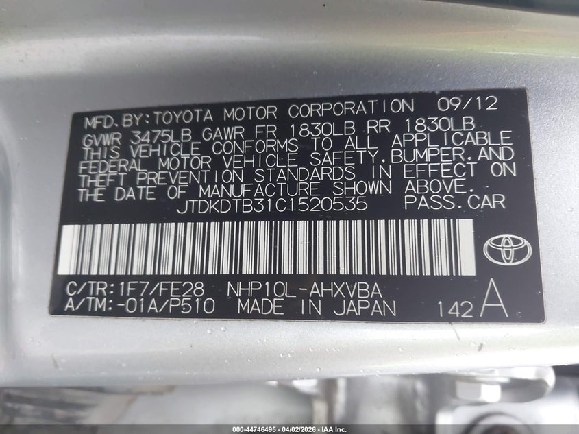 • JTDKDTB31C1520535