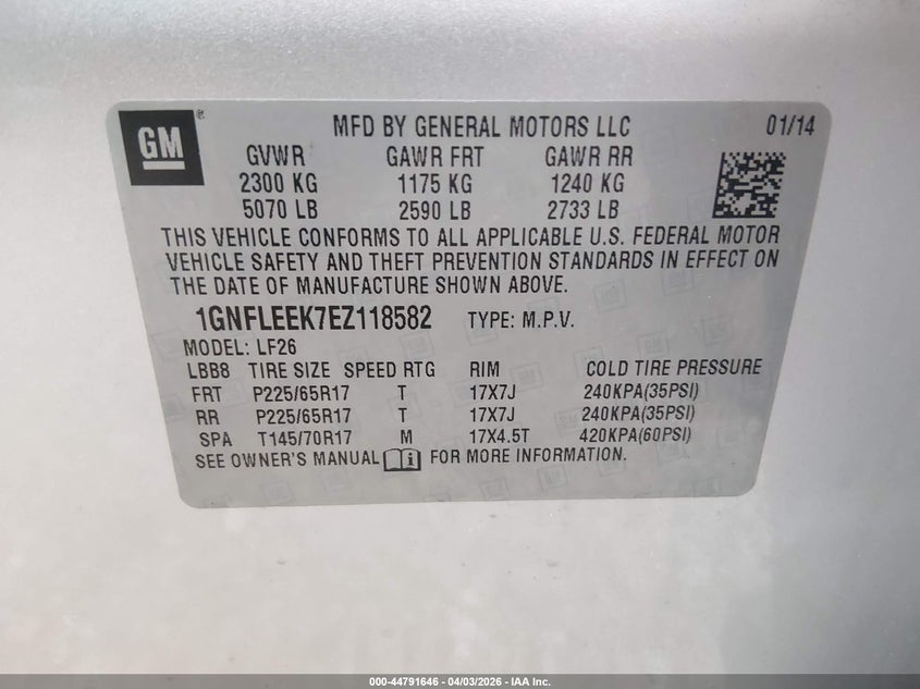 • 1GNFLEEK7EZ118582