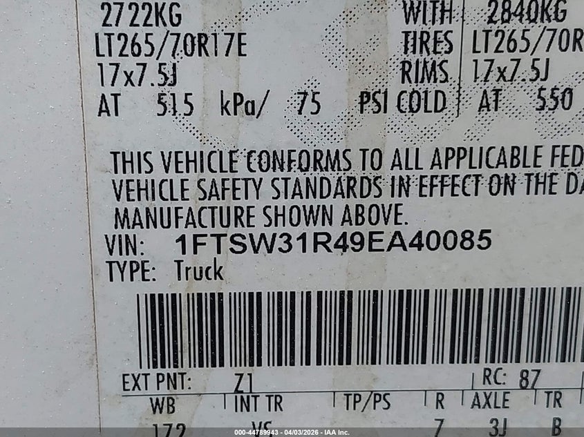 • 1FTSW31R49EA40085
