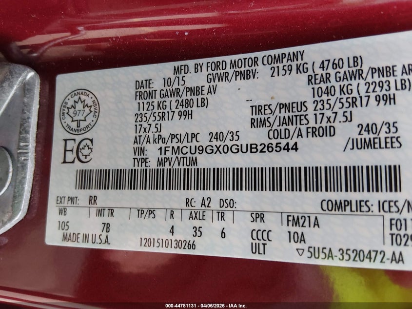 • 1FMCU9GX0GUB26544