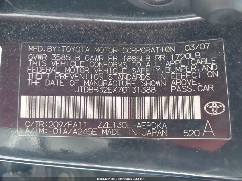 • JTDBR32EX70131388