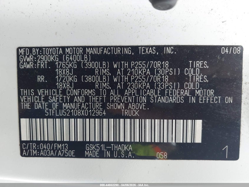 • 5TFLU52108X012964