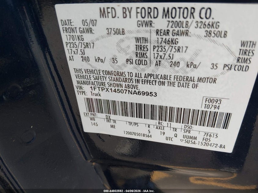 • 1FTPX14507NA69953