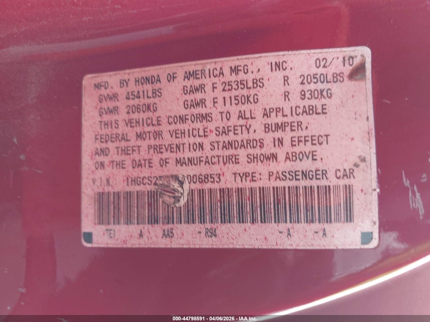 • 1HGCS2B80AA006853