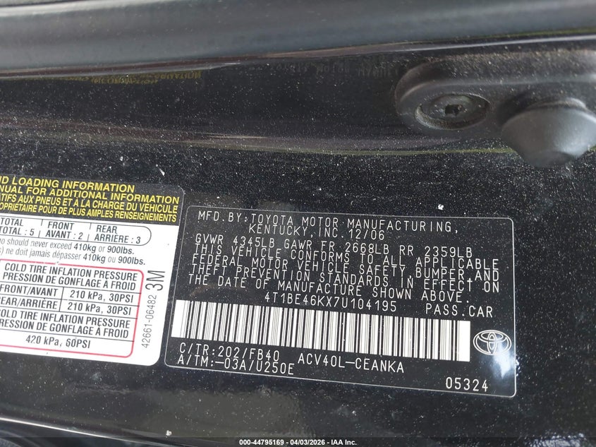 • 4T1BE46KX7U104195
