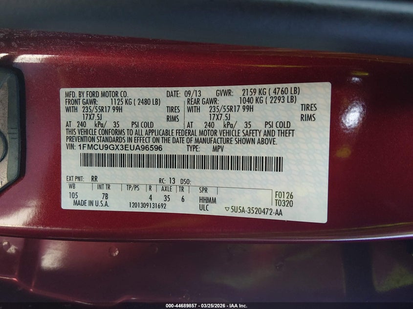 • 1FMCU9GX3EUA96596
