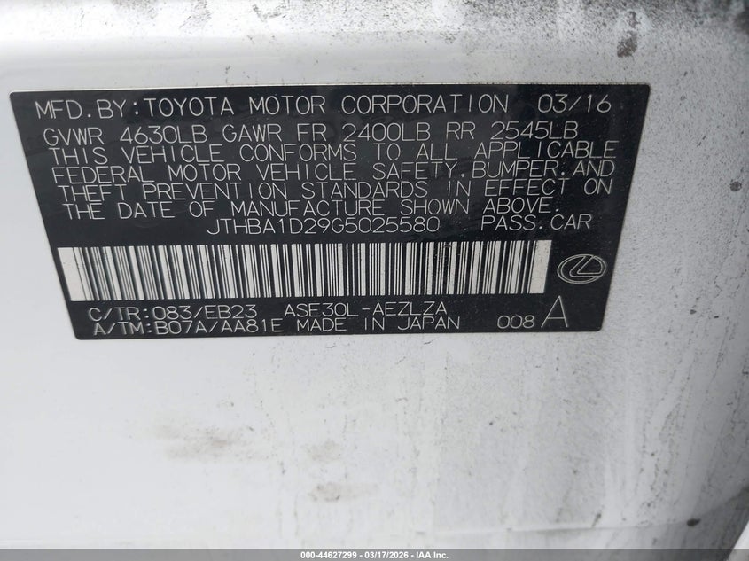 • JTHBA1D29G5025580