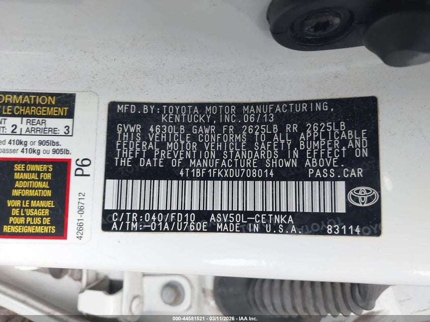 • 4T1BF1FKXDU708014