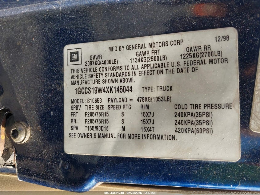 • 1GCCS19W4XK145044