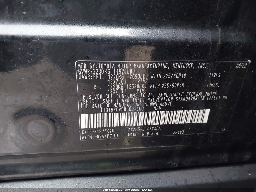 • 4T3T6RFV5NU094009