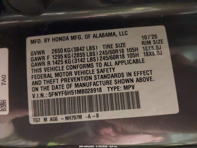 • 5FNYF6H51MB028918