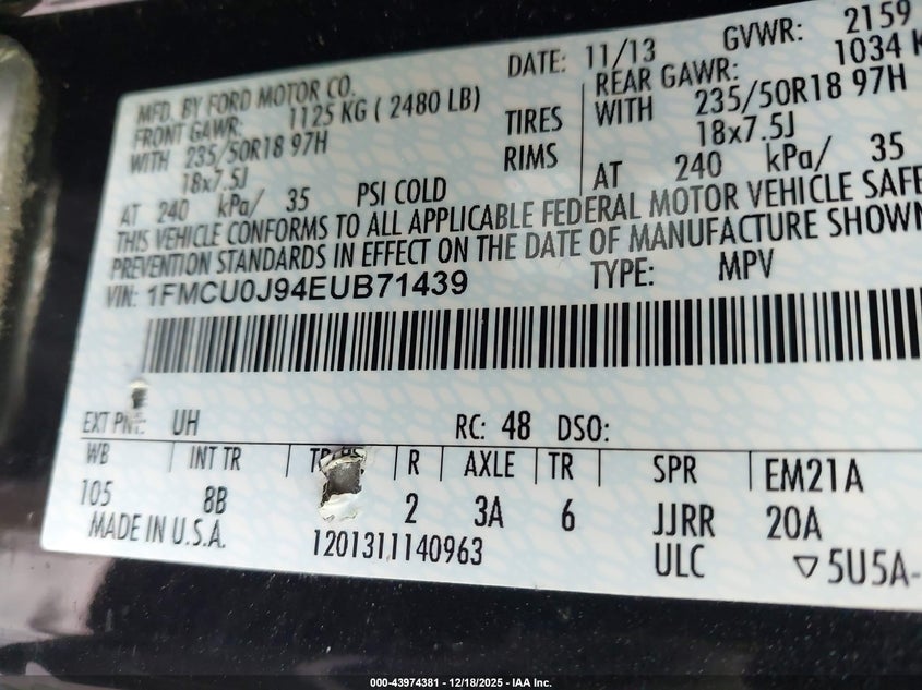 • 1FMCU0J94EUB71439