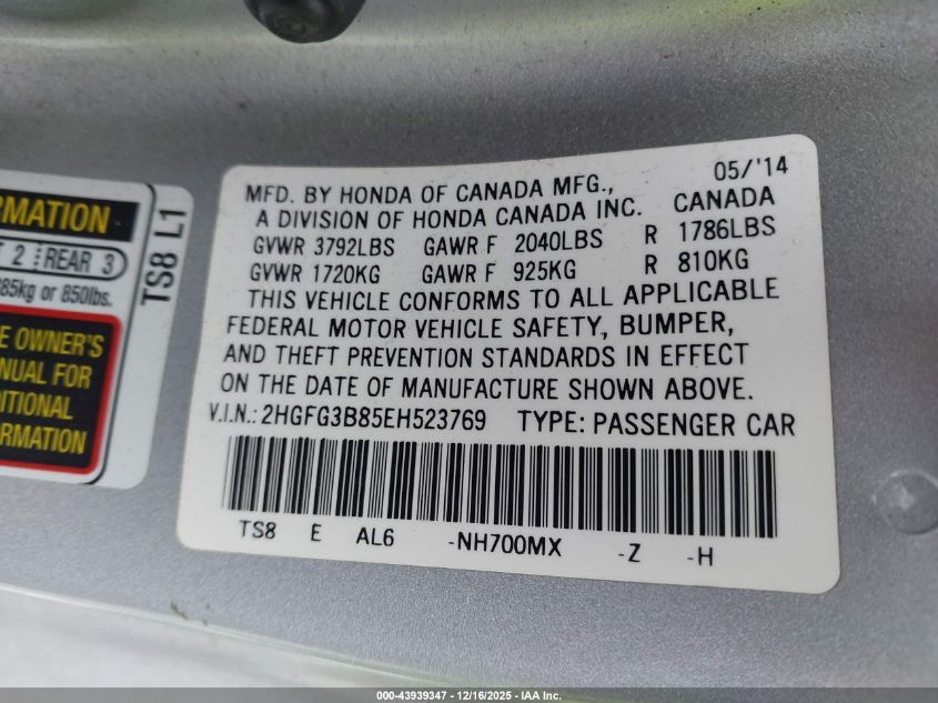 • 2HGFG3B85EH523769